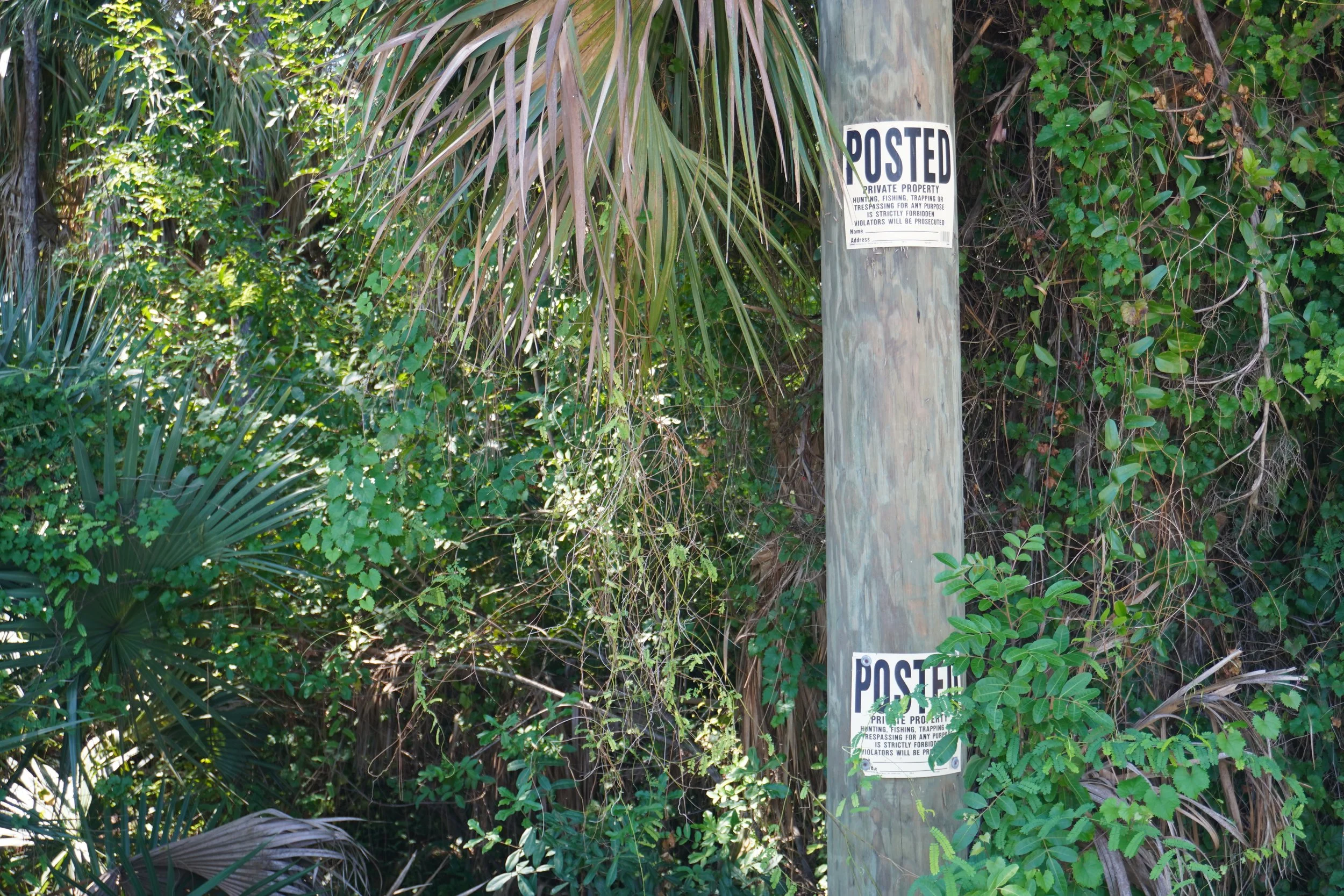 Posted warnings mark the boundaries of the forest where the unhoused find refuge.(Photo: Ricardo Stoyell)